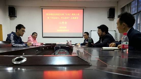 10月25日,為深入學(xué)習(xí)貫徹習(xí)近平新時(shí)代中國(guó)特色社會(huì)主義思想和黨的十九大精神,推進(jìn)全面從嚴(yán)治黨向基層延伸,樹立黨的一切工作到支部的鮮明導(dǎo)向,結(jié)合中共吉首大學(xué)機(jī)關(guān)二總支的黨支部“五化”建設(shè)方案,研究生院黨支部特開展落實(shí)黨支部“五化”建設(shè)工作暨“不忘初心、牢記使命”主題教育工作會(huì)。研究生院全體黨員到會(huì)學(xué)習(xí),黨支部書記肖憲平主持會(huì)議,研究生院副院長(zhǎng)李長(zhǎng)友到會(huì)指導(dǎo)。