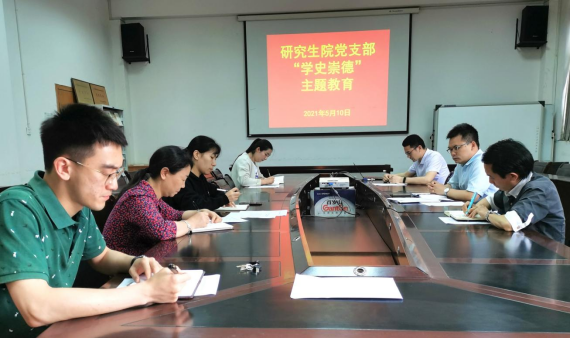 5月10日,研究生院黨支部全體黨員在研究生院黨員活動(dòng)室開(kāi)展“學(xué)史崇德”主題黨史教育集中理論學(xué)習(xí)。會(huì)議由研究生院黨支部組織委員肖憲平主持。