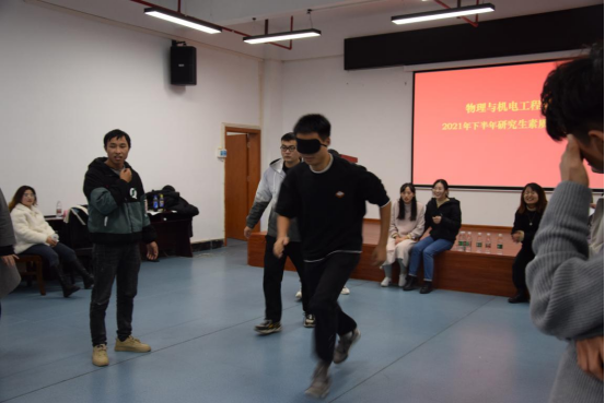 (通訊員 言西早)為加強(qiáng)我院研究生之間的凝聚力和團(tuán)結(jié)力,促進(jìn)團(tuán)隊間互相配合協(xié)調(diào),培養(yǎng)同學(xué)們的團(tuán)隊合作精神,12月3日下午,物理與機(jī)電工程學(xué)院在第十二教學(xué)樓A101開展2021年下半年研究生素質(zhì)拓展活動,學(xué)院團(tuán)委書記譚艷文及全體研究生參加此次活動。