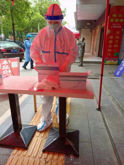 3月18日,湖南省懷化市鶴城區(qū)出現(xiàn)陽性病例,鶴城主城區(qū)緊急實(shí)行封控管理,進(jìn)入戰(zhàn)斗狀態(tài)。在嚴(yán)峻的疫情下,吉首大學(xué)2021級護(hù)理專業(yè)碩士研究生舒婷,主動(dòng)請纓成為追捕病毒的核酸檢測志愿者,積極投身鶴城區(qū)抗疫工作,與前線“戰(zhàn)士們”一起,穿上厚重的防護(hù)服,戴上防護(hù)面屏和N95口罩,將全身上下包裹地嚴(yán)密無隙,爭分奪秒,全力以赴投入采集工作中。
