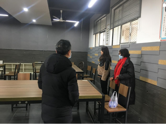 安全衛(wèi)生檢查現(xiàn)場:副院長李婷婷(中間)、黨委副書記杜修望(左一)、研究生辦主任龍社勤(右一)