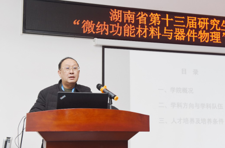 圖為湖南省物理學(xué)會(huì)理事長(zhǎng)、湘潭大學(xué)鐘建新教授致辭