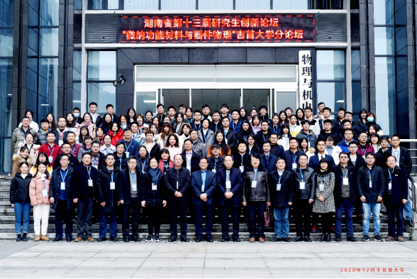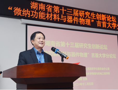 2020年12月4日-5日,由湖南省教育廳主辦,吉首大學(xué)承辦的第十三屆湖南省研究生創(chuàng)新論壇“微納功能材料與器件物理”分論壇在吉首大學(xué)物理與機(jī)電工程學(xué)院順利舉辦。吉首大學(xué)黨委委員、校紀(jì)委書(shū)記、物理學(xué)科帶頭人趙鶴平教授,吉首大學(xué)黨委委員、副校長(zhǎng)鐘海平教授,吉首大學(xué)研究生院院長(zhǎng)李長(zhǎng)友教授,湖南省物理學(xué)會(huì)理事長(zhǎng)、湘潭大學(xué)鐘建新教授等領(lǐng)導(dǎo)、專(zhuān)家出席分論壇開(kāi)幕式,來(lái)自國(guó)防科技大學(xué)、中南大學(xué)、湖南大學(xué)、湖南師范大學(xué)、湘潭大學(xué)、吉首大學(xué)等省內(nèi)20余所高校的150余名師生代表參加論壇。論壇開(kāi)幕式由物理與機(jī)電工程學(xué)院院長(zhǎng)鄧科教授主持。