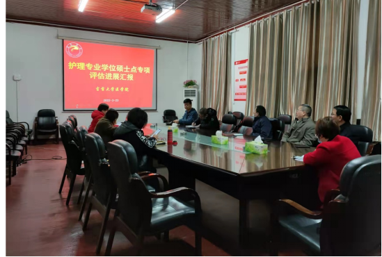 護理系主任李金秀分別就學位點專項評估報告、專項評估工作進展情況、自評材料準備情況、存在問題及下一步工作計劃等內容進行匯報,包含了學位授權點基本情況,如基地實踐、師資水平、人才培養(yǎng)、管理體系、學位授予和培養(yǎng)成效等六方面的內容。隨后與會人員對自評材料撰寫、佐證材料準備、下一步工作安排等內容進行了交流討論,特別是陳正英教授,憑借著豐富的專業(yè)背景和工作經驗,對自評報告給予了建設性的意見。