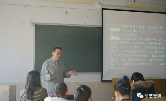 陳教授在課上介紹了包括湘西少數(shù)民族口頭文學(xué)遺產(chǎn)、表演藝術(shù)文化遺產(chǎn)、傳統(tǒng)技藝文化遺產(chǎn)、民俗文化遺產(chǎn)、飲食文化遺產(chǎn)、醫(yī)藥文化遺產(chǎn)等五大板塊內(nèi)容以及湘西地區(qū)各級非遺傳承人基本情況。