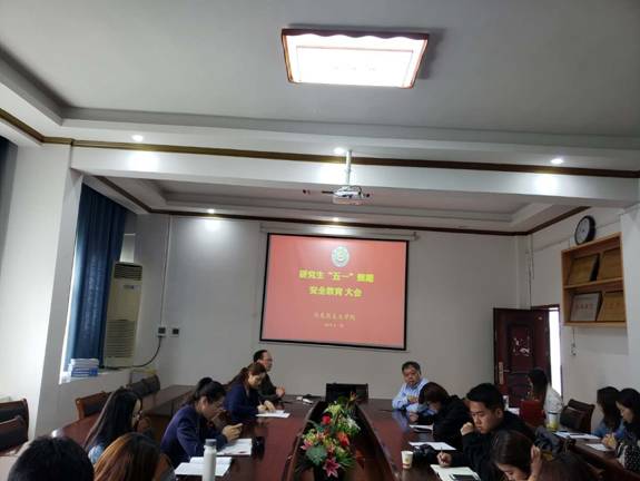首先,歐陽靜老師傳達了研究生院專門召開的假期安全大會上的精神。第一,各學院要嚴格假期請假手續(xù),外出學生必須簽訂假期安全協(xié)議書;第二,嚴禁學生參加任何有安全隱患的活動;第三,密切關(guān)注各學院重點觀察對象的假期活動;第四,每個同學把自己假期的去向報到班長處,由學院統(tǒng)一收集。請同學們務必注意人身與財產(chǎn)安全;第五,五一假期外出旅游人數(shù)多,同學們要提前預定好返程車票,不能耽誤正常上課時間。