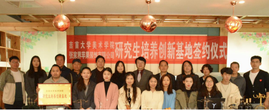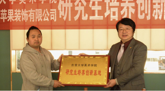 為進(jìn)一步深化企業(yè)與學(xué)校在培養(yǎng)研究生實(shí)踐能力方面的合作,3月25日上午,美術(shù)學(xué)院與張家界蘋(píng)果裝飾工程有限公司舉行簽約與授牌儀式,成立吉首大學(xué)美術(shù)學(xué)院藝術(shù)專業(yè)碩士研究生培養(yǎng)創(chuàng)新基地。