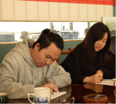 美術(shù)學(xué)院副院長(zhǎng)李婷婷(右1)與張家界蘋(píng)果裝飾工程有限公司法人代表