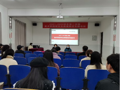 為深入學(xué)習(xí)中央、省委省政府、省教育廳、學(xué)校的文件精神,落實(shí)學(xué)校疫情防控措施,做好研究生疫情防控工作,保證學(xué)生生命健康安全,吉首大學(xué)美術(shù)學(xué)院于3月21日上午10點(diǎn),在學(xué)院思政影廳召開了美術(shù)學(xué)院研究生疫情防控專題會(huì)議。會(huì)議由研究生辦主任龍社勤主持,美術(shù)學(xué)院副院長李婷婷、副書記杜修望、研究生辦秘書伍璽臻、研究生辦秘書姜?jiǎng)?lì)立以及全體研究生參加了此次會(huì)議。本次會(huì)議線上、線下同步進(jìn)行。