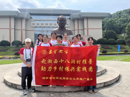 動員會后,實踐團成員在從文廣場合影留念,準備開啟赴湘西十八洞村推普助力鄉(xiāng)村振興新征程。他們紛紛表示要把專業(yè)知識運用到社會實踐中,要把論文寫在中國大地上,要把青春揮灑在鄉(xiāng)村振興的道路上,為鄉(xiāng)村振興貢獻自己的力量。