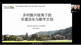 第一場講座,張朵朵博士以“鄉(xiāng)村振興視角下的非遺活化與數(shù)字文創(chuàng)”為主題。張博士從“鄉(xiāng)村文化振興與民間藝術的日常創(chuàng)造力、非遺手工藝活化、文創(chuàng)與數(shù)字文創(chuàng)設計趨勢、湖南大學數(shù)字文化創(chuàng)新的嘗試”四個方面進行講解。重點談到民間藝術的活力,非遺手工藝人的活化,以及新文創(chuàng)、鄉(xiāng)村產品設計、品牌IP、后疫情時代虛擬現(xiàn)實的經典案例,向大家展示了其研究團隊在鄉(xiāng)村設計與社會創(chuàng)新方向的嘗試。張朵朵表示面向鄉(xiāng)村文化振興需堅持農民的主體地位協(xié)同創(chuàng)新,堅持當?shù)卮迕褓x權參與,激發(fā)鄉(xiāng)村文化的內生性。