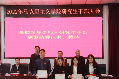 副院長曾文宣讀了馬克思主義學(xué)院2022年研究生干部、優(yōu)秀黨員、優(yōu)秀志愿者的表彰文件,學(xué)院領(lǐng)導(dǎo)老師為研究生干部與獲獎(jiǎng)人員頒發(fā)了榮譽(yù)證書、聘書并合影。