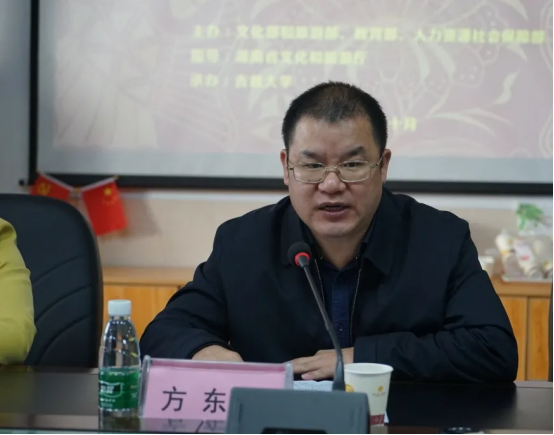 黨委委員、副校長(zhǎng)方東輝教授首先對(duì)吉首大學(xué)進(jìn)行了簡(jiǎn)單的介紹,并表示此次的研培班是一件具有重要意義的大型活動(dòng),學(xué)校會(huì)給予高度重視。其次,肯定了音樂(lè)舞蹈學(xué)院在非物質(zhì)文化遺產(chǎn)保護(hù)上所作出的成績(jī),正是因?yàn)殚L(zhǎng)期投入非遺保護(hù)工作的多年積淀,才能結(jié)下當(dāng)下的累累碩果。而在本次的研陪班中,吉首大學(xué)校方也會(huì)立足高校學(xué)科優(yōu)勢(shì),背靠大武陵地區(qū)豐富的少數(shù)民族資源,進(jìn)一步推進(jìn)對(duì)豐富資源的發(fā)掘與保護(hù),竭盡所能推動(dòng)地方經(jīng)濟(jì)發(fā)展。也希望各位學(xué)員能夠珍惜本次來(lái)之不易的研培機(jī)會(huì),積極完成研培班的各項(xiàng)學(xué)習(xí)任務(wù),為國(guó)家非物質(zhì)文化遺產(chǎn)的保護(hù)與發(fā)展貢獻(xiàn)自己的力量。