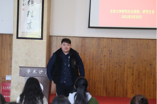 發(fā)言、探討環(huán)節(jié),研究分團(tuán)委學(xué)生副書記楊丹表示,作為新時(shí)代的碩士研究生,我們既要緬懷先輩的光輝業(yè)績,發(fā)揚(yáng)黨的優(yōu)良傳統(tǒng),優(yōu)良作風(fēng),更要時(shí)刻牢記學(xué)生干部所肩負(fù)的責(zé)任,清醒地認(rèn)識(shí)到我們面臨的形勢和任務(wù)。組織部劉造表示,我們都應(yīng)該明白我們現(xiàn)在擁有的美好生活都是無數(shù)革命前輩們用他們的鮮血換來的,作為青年的我們,更應(yīng)該要多多學(xué)習(xí)黨史,做到不忘歷史,不忘初心,努力奮斗,砥礪前行。組織部成員趙媛淵分享了湖南澧縣左權(quán)將軍的故事,她表示,革命的紅色火炬經(jīng)過一代又一代人的傳遞,已經(jīng)到了我們手上,恰逢中國共產(chǎn)黨成立100周年之際,希望大家共同學(xué)習(xí),砥礪前行,肩負(fù)起時(shí)代賦予我們的任務(wù)和使命。生活部銀帆對(duì)工人運(yùn)動(dòng)的相關(guān)歷史進(jìn)行介紹。宣傳部代表雷朝文以“黨史”、“新中國史”、“改革開放史”、“社會(huì)主義發(fā)展史”,“四史”為主題進(jìn)行發(fā)言,講述如何學(xué)習(xí)四史、學(xué)習(xí)四史的重要性等內(nèi)容。
