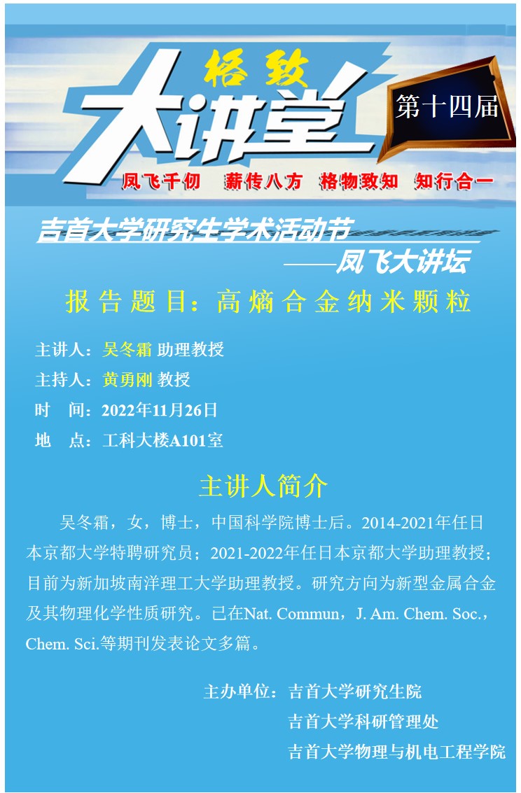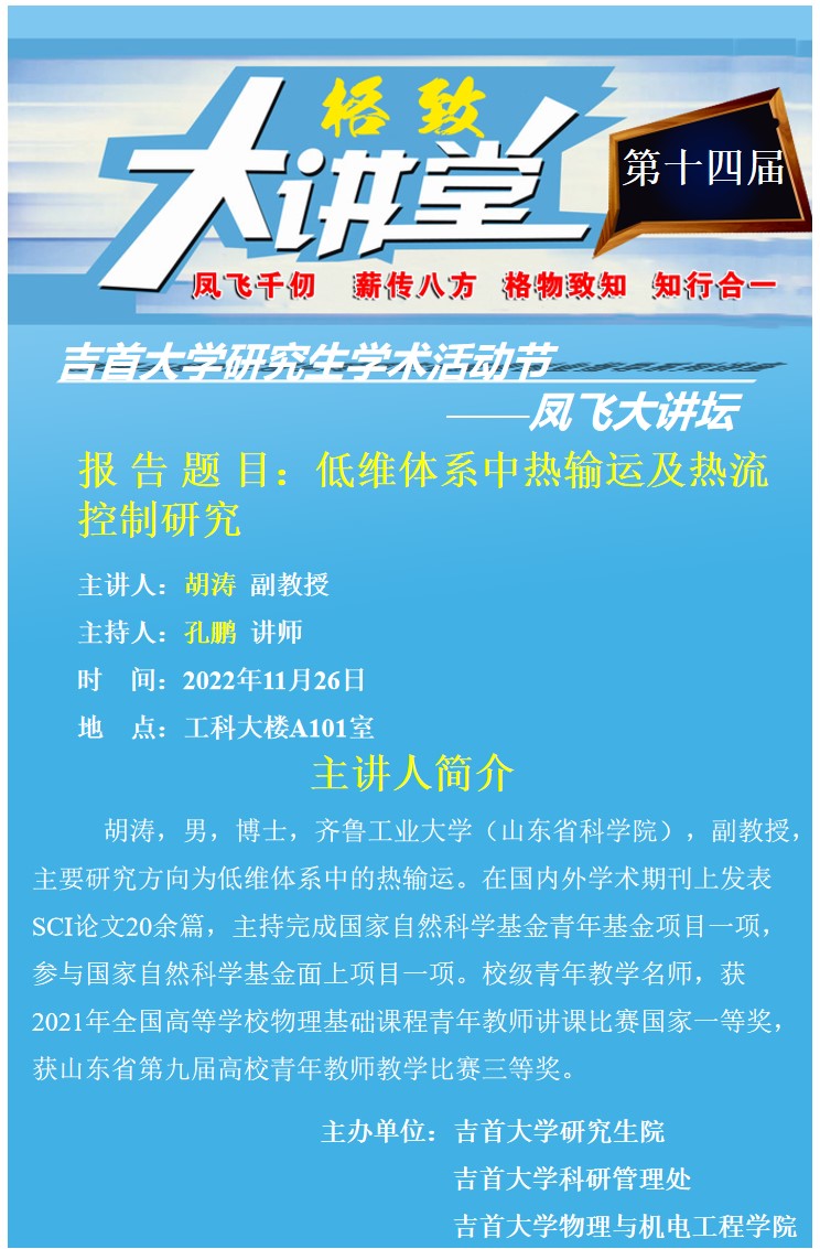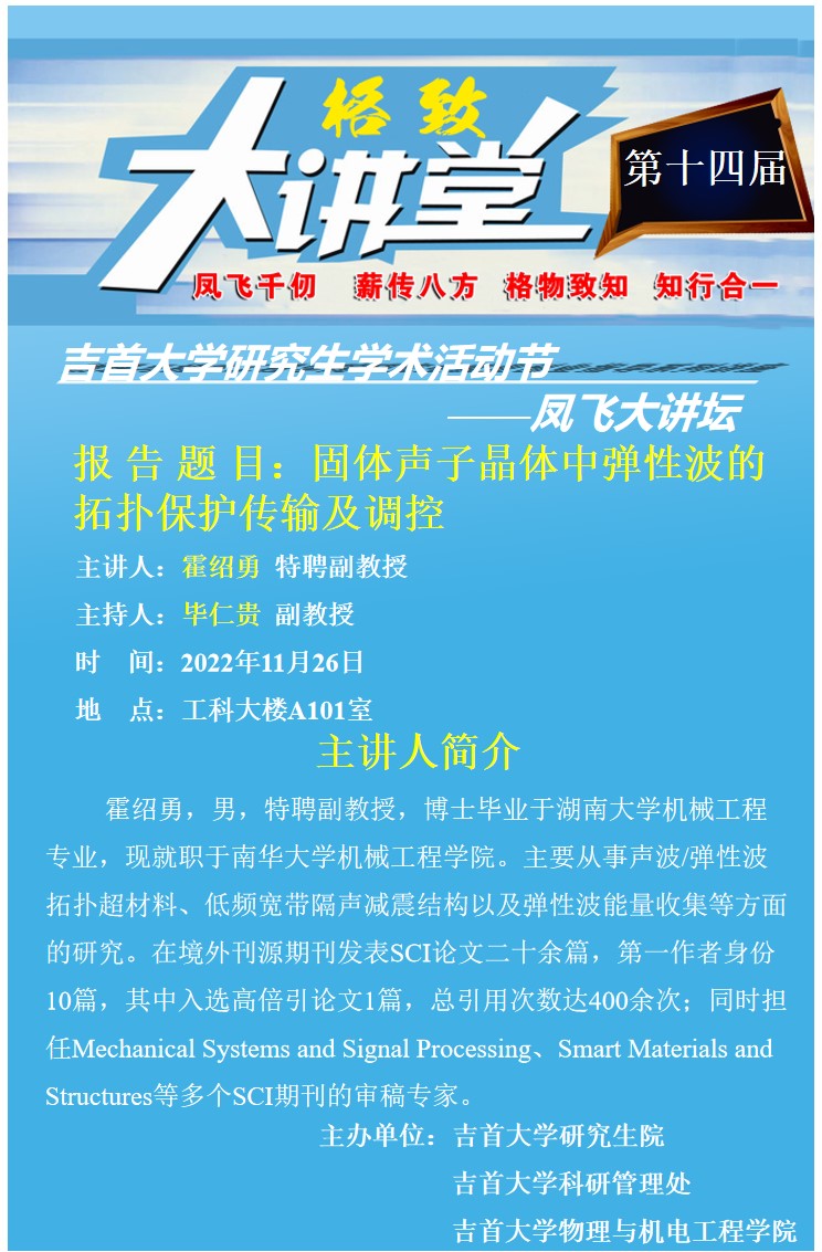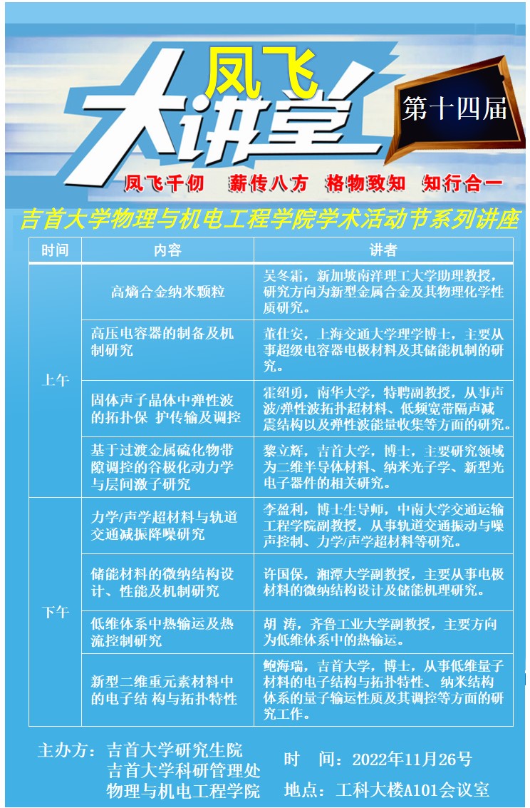 【第十四屆學術活動節(jié)之鳳飛大講壇】——物理與機電工程學院八場系列講座