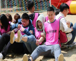 緊接著,經(jīng)過各隊員的頭腦風暴后,產(chǎn)生了少年隊、醬紫隊、對不隊、SCI核心期刊隊四支團隊。四支團隊很快進行了下一個游戲項目“挑戰(zhàn)150”,包括“屹立不倒”、“身體部位傳道具”等內(nèi)容,團隊之間PK項目的賽制一下子激起了全體參與人員的高漲氣勢,通過協(xié)作共同取勝,有效的促進了各個團隊協(xié)作力和凝聚力,現(xiàn)場的加油吶喊聲此起彼伏。