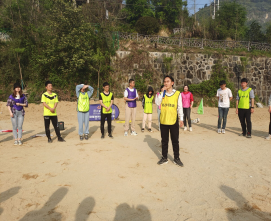 剛抵達目的地古丈,教練就帶領全體成員進行了熱身小游戲“一塊五”。參與人員必須在教練現(xiàn)場發(fā)出的數(shù)字口令后立馬尋找伙伴抱團,落單的人員只能遺憾出局。這項小游戲很考驗參與人員的隨機應變能力和團隊合作意識。現(xiàn)場歡快的氛圍以及全體成員的熱情被很快點燃。