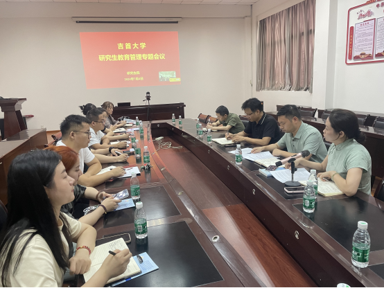 尹鵬飛副院長(zhǎng)領(lǐng)學(xué)了《中共吉首大學(xué)委員會(huì)辦公室關(guān)于進(jìn)一步明確研究生管理機(jī)制的通知》精神,并簡(jiǎn)單介紹了學(xué)校研究生教育管理的基本現(xiàn)狀及面臨的諸多挑戰(zhàn)。提出需加強(qiáng)導(dǎo)師隊(duì)伍建設(shè)、修訂完善管理制度、加強(qiáng)研究生心理健康教育、完善研究生就業(yè)體系、加強(qiáng)研究生管理工作信息化建設(shè)來(lái)提高管理效率與服務(wù)水平等改進(jìn)措施和建議等。