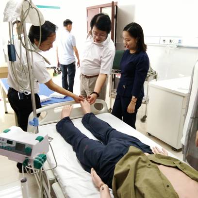圖為檢查組在臨床技能訓(xùn)練室檢查
