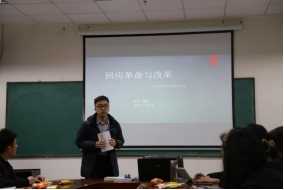 隨后,杜天宇同學(xué)分享了《回應(yīng)革命和改革》一書,他用人類學(xué)的視角帶大家領(lǐng)略皖北李村的社會變遷與延續(xù)以此來分析黨的二十大精神。習(xí)近平總書記在黨的二十大報告中提出前進(jìn)道路上必須牢牢把握的五個重大原則,其中首要原則是“堅持和加強(qiáng)黨的全面領(lǐng)導(dǎo)”。杜天宇同學(xué)認(rèn)為只有堅持和加強(qiáng)黨的全面領(lǐng)導(dǎo),才能凝聚起實現(xiàn)中華民族偉大復(fù)興的磅礴偉力,萬眾一心朝著宏偉目標(biāo)堅定前行。最后,與會成員一起探討了二十大召開的意義,分享了自己在學(xué)習(xí)二十大報告過程中產(chǎn)生的心得與體會。此次讀書會在熱烈的氛圍中圓滿結(jié)束。