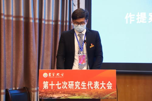 校研究生會(huì)執(zhí)行主席黃雨婧作第十六屆研究生會(huì)工作報(bào)告。邱東明代表大會(huì)提案工作委員會(huì)作《提案工作報(bào)告》。