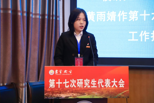 圖為黃雨婧作第十六屆研究生會(huì)工作報(bào)告 賀霆飛攝