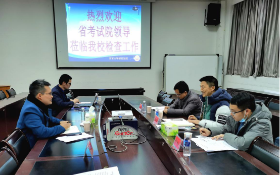 在研究生院會議室,檢查組聽取了2022年碩士研究生招生考試吉首大學(xué)考點考前準(zhǔn)備工作暨自命題工作報告。潘送球?qū)z查結(jié)果做出總結(jié),他對我校研究生招生考試考點準(zhǔn)備工作表示滿意,并結(jié)合我省2022年碩士研究生招生考試總體情況和疫情防控常態(tài)化工作作出具體要求。