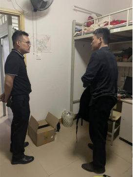 圖為蔣輝老師一行走訪大田灣校區(qū)研究生宿舍