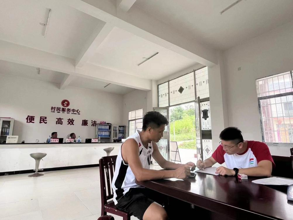 圖為調(diào)研團向毛號村村干部進行問卷調(diào)研
